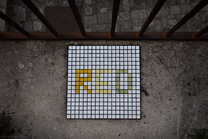 Ememem, figlio dell’asfalto, la cui arte nasce su un marciapiede danneggiato nel 2016, ha il disordine che gli scorre nelle vene. Che lavori nell’ambito di eventi organizzati, o in incognito al chiaro di luna, Ememem ripara la strada e il cuore di chi la calpesta. Nel 2016 per dare un nome al suo stile e alla sua tecnica, inventa il termine «flacking», dal francese «flaque» (pozzanghera). Oggi flaking è comunemente usato in riferimento all’arte di “riparare i buchi”. I colori dei suoi interventi sui marciapiedi illuminano le ferite del tessuto urbano.