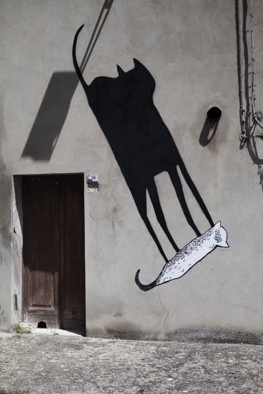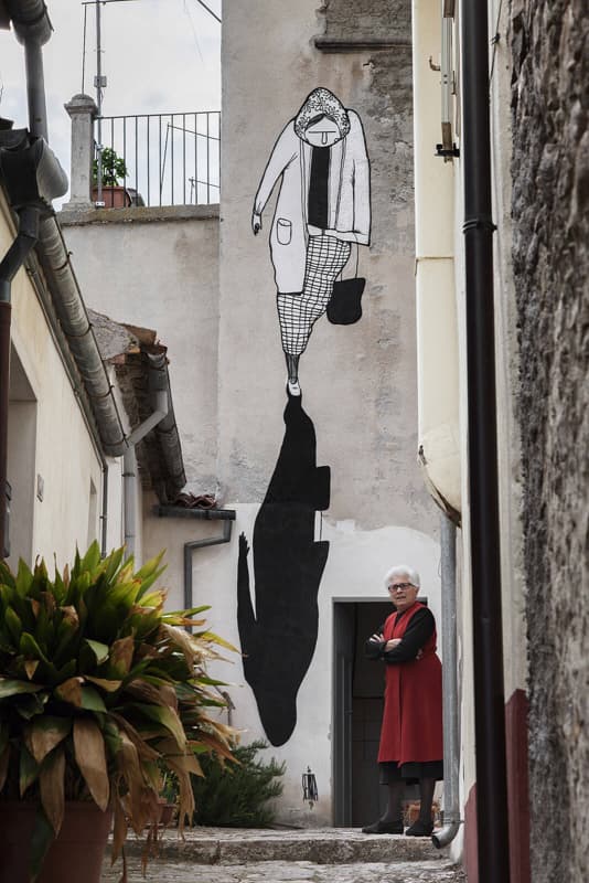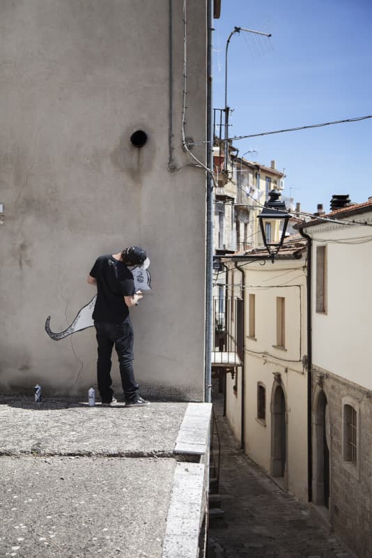 Non c’è soluzione di continuità tra le linee tracciate nei suoi disegni e sui notebook e le solide pennellate apposte da Senna sui muri delle città, segnando il contesto urbano con una visione semplice e piena di sentimento. L’arte fragile e delicata di Alex Senna propone una via alternativa alla durezza di cui spesso l’arte urbana si fa carico.
