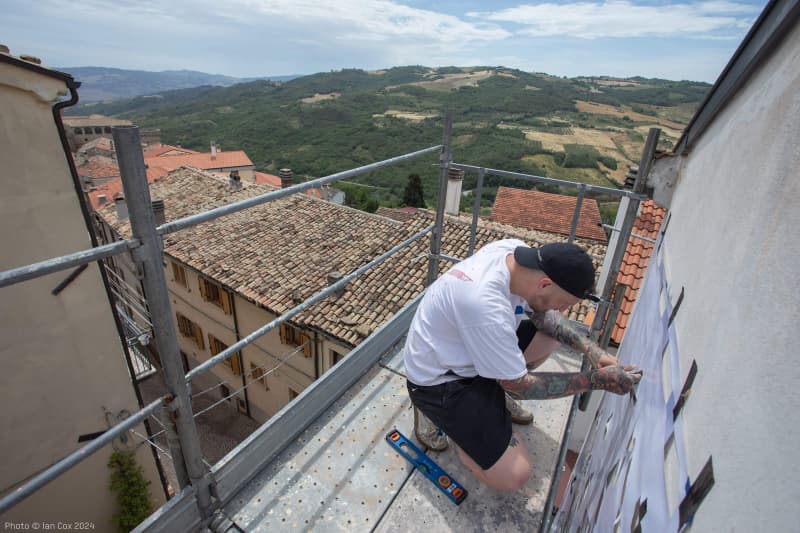 Elementi come capelli al vento e tessuti in movimento – dettagli che generalmente risultano particolarmente complicati da riprodurre con lo stencil – sono resi con grande maestria da Nick e Laura, attraverso la loro dedizione alla tecnica artigianale. Questo metodo non solo mostra la loro competenza tecnica e attenzione al dettaglio, ma dimostra anche la loro volontà di preservare l’autenticità nell’arte dello stencil, arrivando a realizzare importanti opere visive che affascinano lo sguardo e toccano il cuore con l’utilizzo di “semplici” fogli di carta.